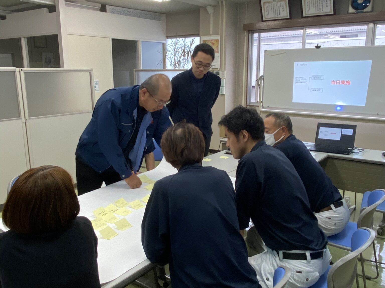 今回のテーマは「業務改善」。それぞれの意見が飛び交い、なかなかまとめるのに苦戦していますが、今後も継続して学びを深め、会社全体が成長できればと思っています。