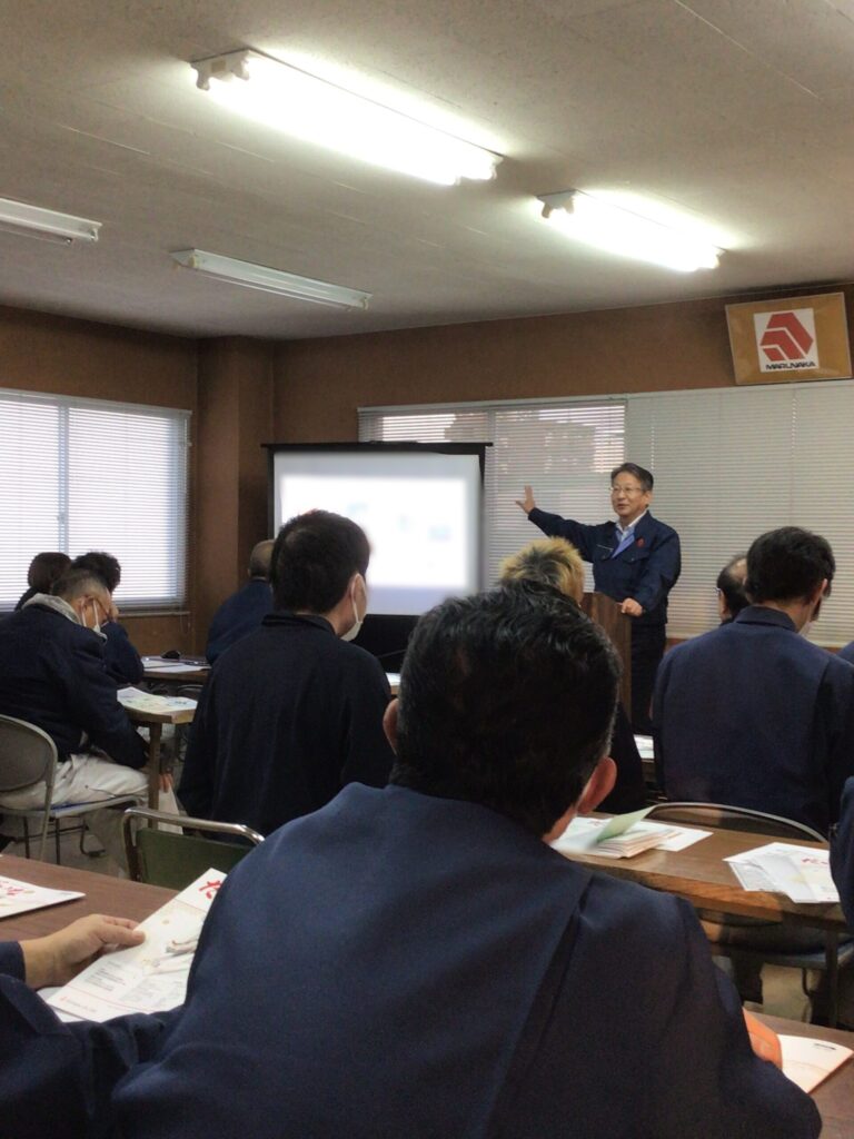 中島社長及び各部長から、77期業績の振り返りと78期の経営目標と戦略方針が発表されました。青木会長からダイナパックグループ中期経営計画、森顧問から77期業務改善の説明と今後の取り組みなどが発表されました。